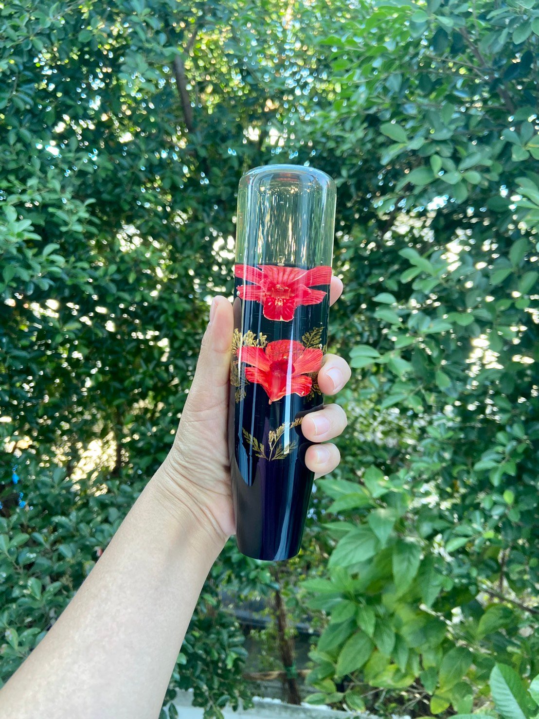 หัวเกียร์คริสตัลลายกล้วยไม้สีแดงขนาด 8 นิ้วจากไต้หวัน